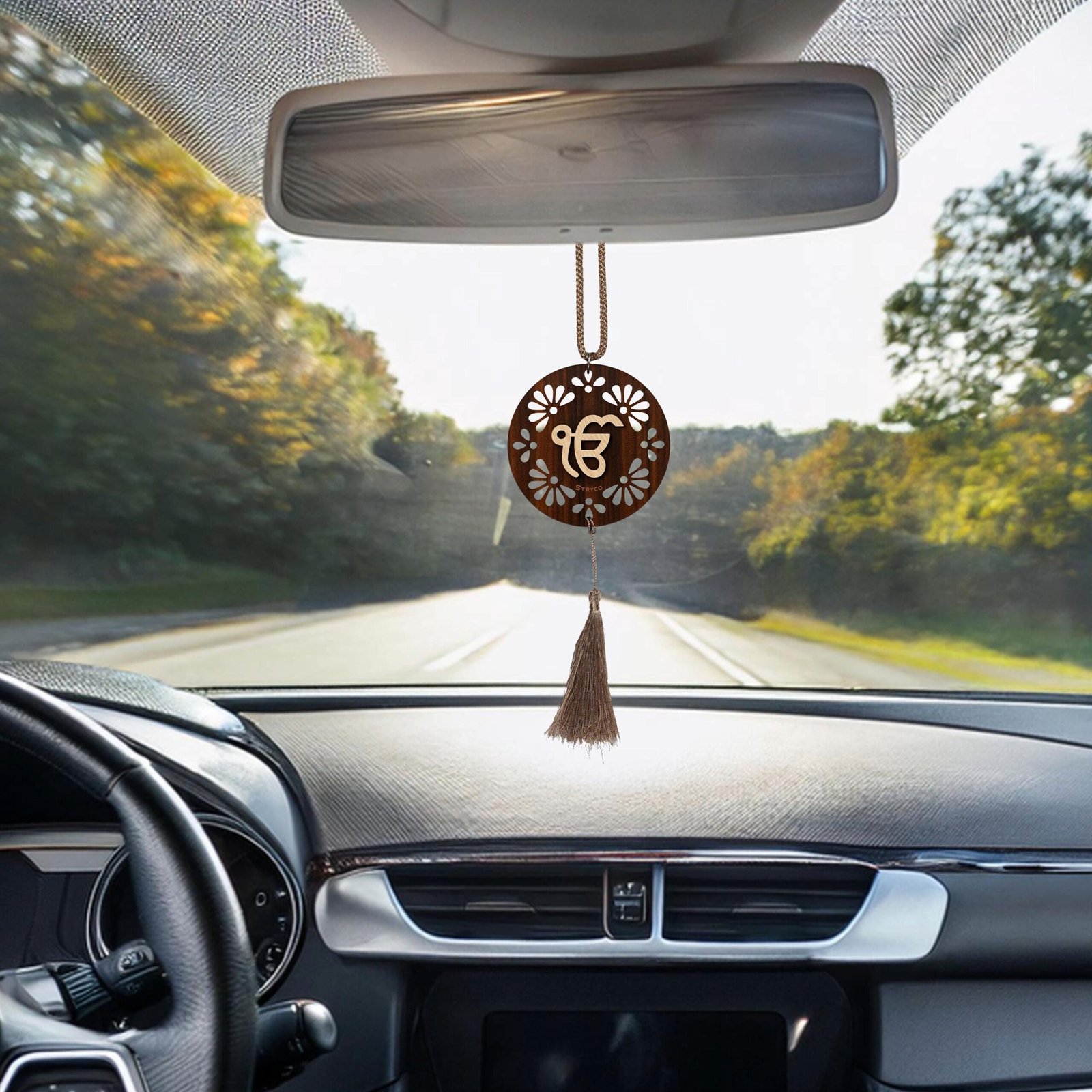 Ik Onkar Wooden Car Hanging: Sikh Car Accessory